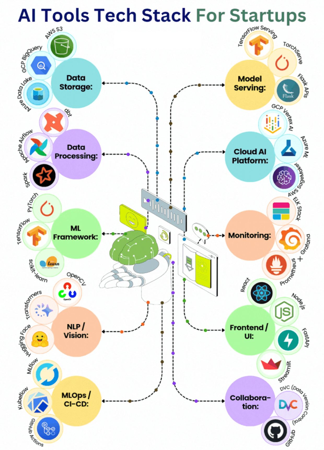 Below is a clean breakdown of the AI tools tech stack for startups, explaining what each layer does and why it exists: